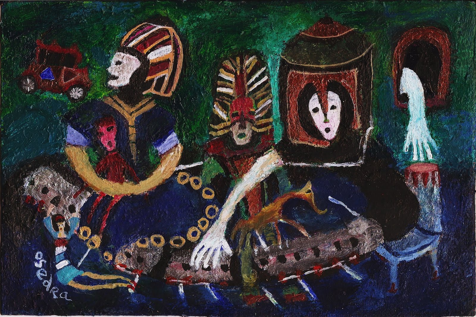 There is a particular kind of corrupt innocence with which I look at the world which makes paintings like this one fairly cathartic to me. I am facinated by masks, puppets and puppeteers and look back on those waning days of the "real" Times Square with a disturbing nostalgia for the overwhelming presence of peep shows, drug dealers, addicts, arcades, homeless people, filthy movie theaters and prostitutes. Who wasn't a puppet back then? Who's not a puppet right now? And why would anyone actually miss those days in New York and long for them again? What's so wonderful about prostitution, poverty, sex addiction and drug addiction? I guess that depends on who you ask. In truth, although this city took great strides to hide these "undesirables" they still exist - in us and among us. That's why so many people come from around the world to catch just one whiff of what Times Square was before Disney did to it what it did to Grimm's Fairy Tales. Well, for me those days in New York haven't gone away they've simply been driven deeper underground. Times Square was to many people what the internet is now. But to think that the Times Square of today as merely
